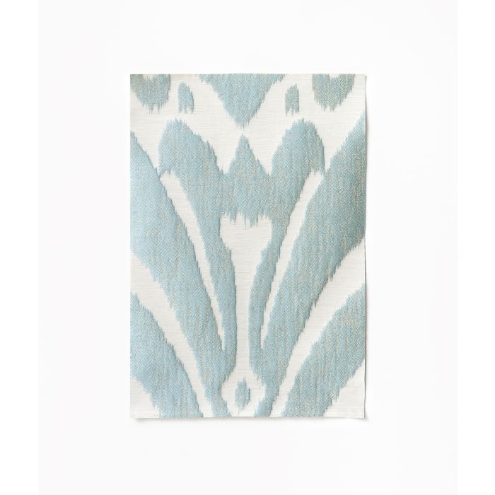 Der Stoff Dedar - Ikat - IKAT-116 Celeste hat eine Breite von 145 cm, einen Rapport von 84 cm und besteht aus 39% Baumwolle, 22% Acetat, 20% Leinen, 19% Seide. Es gibt ihn in 12 Farbvarianten.